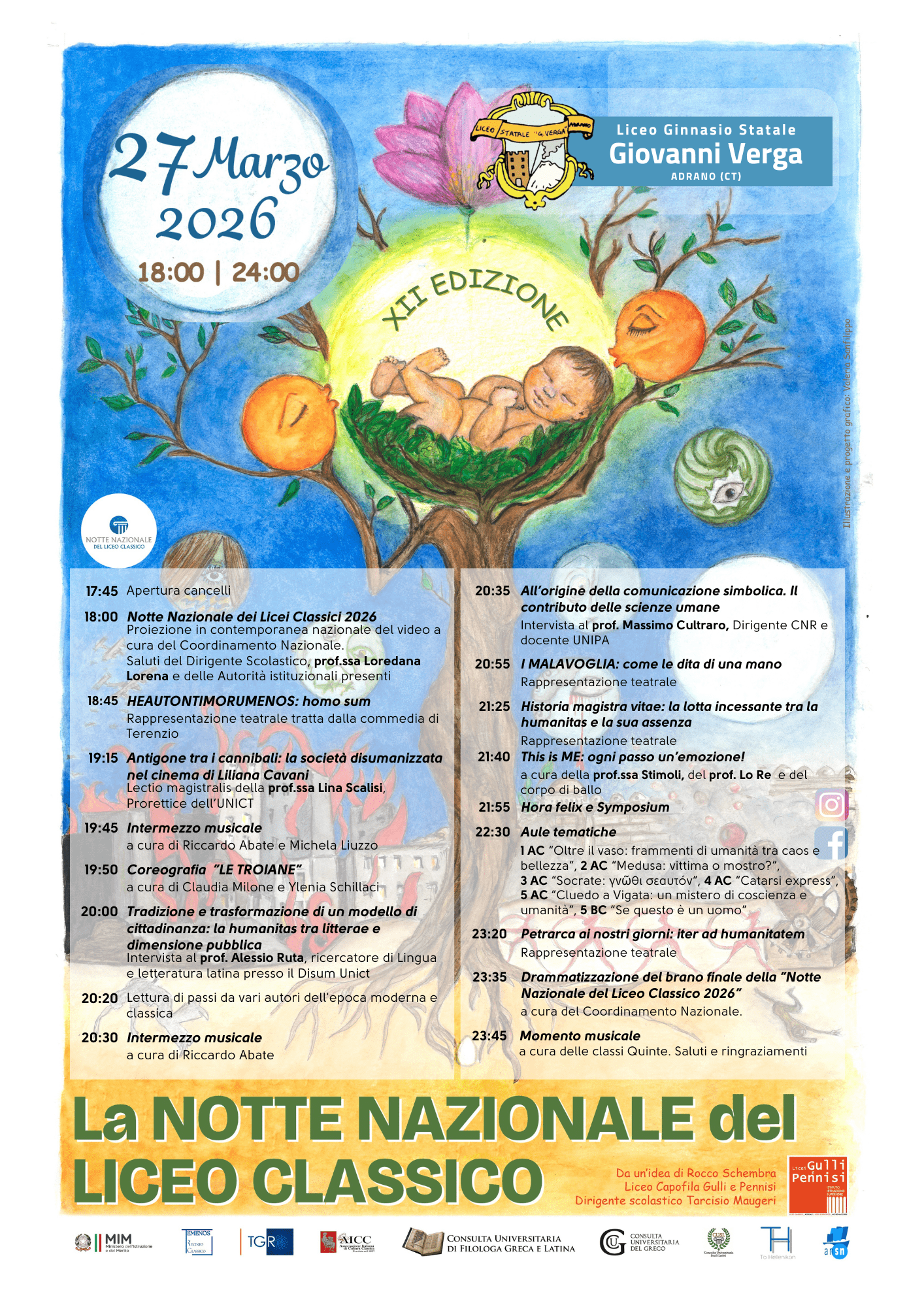 L’evento, sostenuto dal MIM, nasce da un’idea del prof. Rocco Schembra al fine di dimostrare che il curricolo del classico è ancora pieno di vitalità. Il tema, su cui sono chiamati a riflettere gli studenti dei Licei classici che aderiscono alla XII edizione della Notte Nazionale del Liceo Classico, è il seguente: